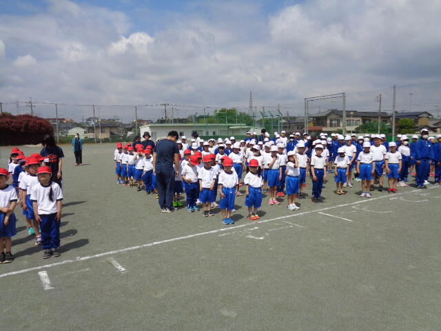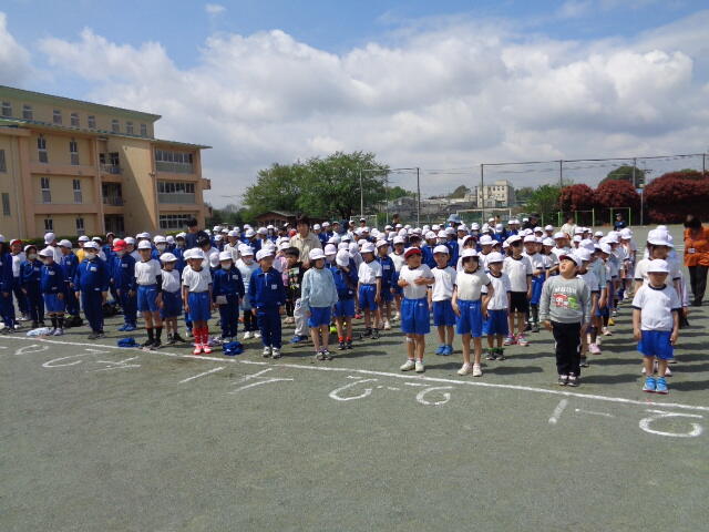 5/1日(木)情報交換会③ 体力UP集会(業間休みの時間)避難訓練(竜巻対応) 陸上練習(代表児童:放課後に真岡市総合運動公園で実施)