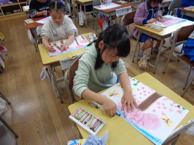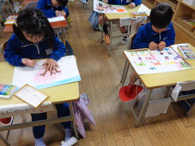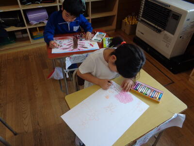 ★子供たちは、とても意欲的に創作活動(春の絵)に取り組んでいました(#^.^#)。