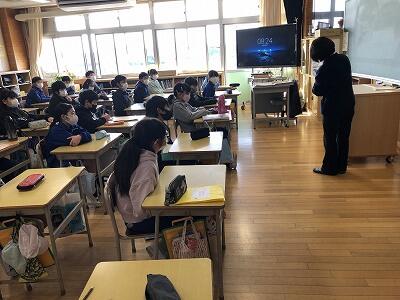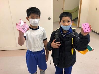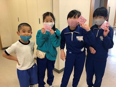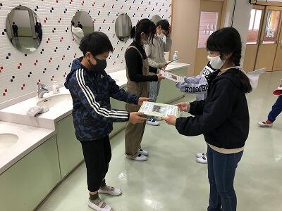 清掃の後、在校生からの感謝の色紙が6年生に贈られました。