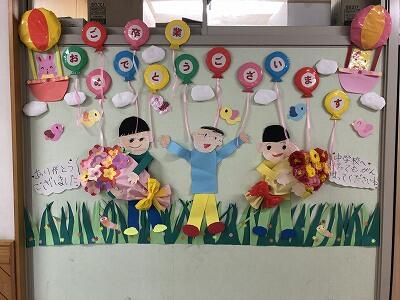 3月の掲示に「ご卒業おめでとうございます」のことばが入りました。