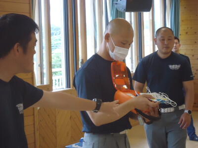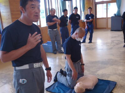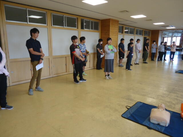 本日の放課後、真岡消防署二宮分署の方々を講師としてお招きし、「心肺蘇生法実技研修」を行いました。