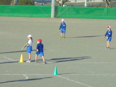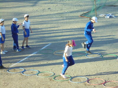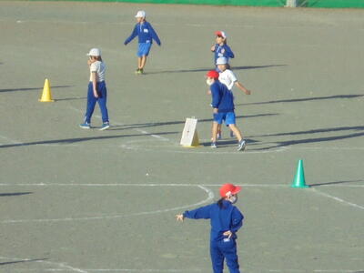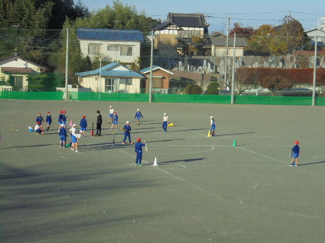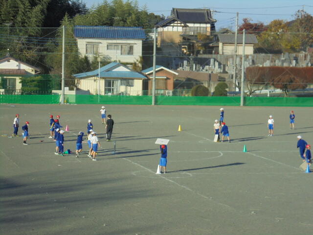★爽やかな陽気の下、4年生が1・2組とも、元気に体育の授業に臨んでいました。
