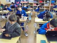 ★5年1組「音楽」では、熱心に「鍵盤ハーモニカ」の練習に取り組んでいました。