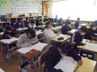 ★6年2組「書写」では、ちょうど各自の作品が書き上がったところでした(;^ω^)。