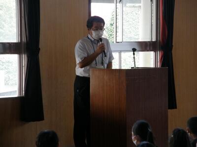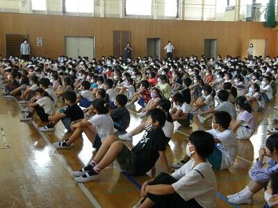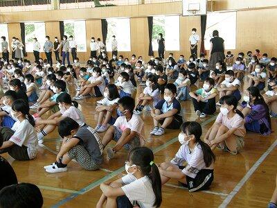 夏休みの過ごし方について「めあてをもって過ごしてほしい」「事件・事故に巻き込まれないよう注意してほしい」「コロナや熱中症にも気を付けて」というお話でした。