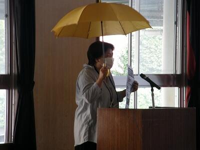 熱中症、コロナ対策について、「3密をさける」「傘で距離をとる」ことの話がありました。