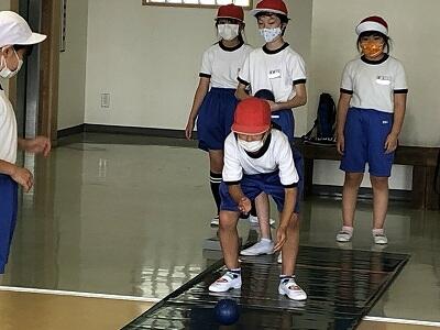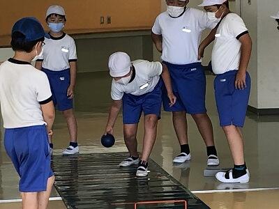8月18日、4年自然教室1日目、「スマイルボーリング」の様子です。