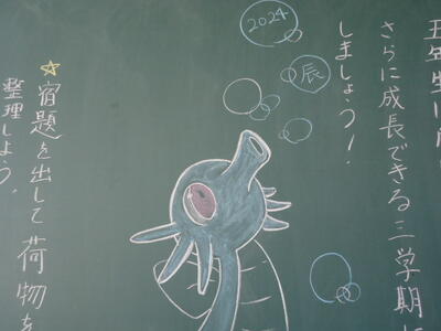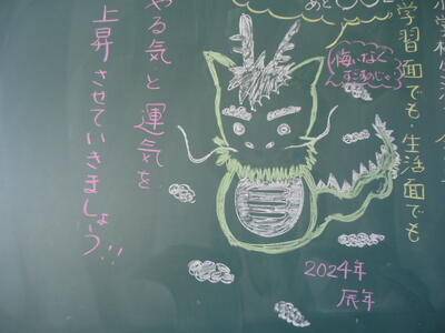 今年は辰年ですね。児童の皆さん一人一人が「昇り龍」のように、力強さと逞しさを携えて、3学期もそれぞれの目標達成を目指し、力一杯頑張って欲しいと願っています(^_^)v もちろん先生たちも皆さんに負けないよう頑張ります!