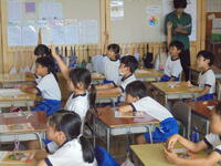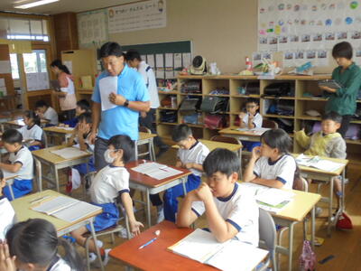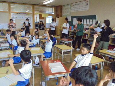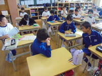 ★子供たちは、大変真剣な態度で授業に臨んでいました。教職員の方も自身の指導力向上のために、目前で展開されている授業の一部始終をしっかりと見届けていました。