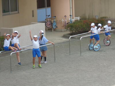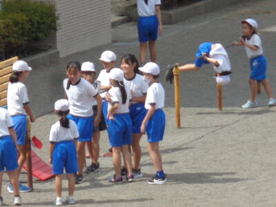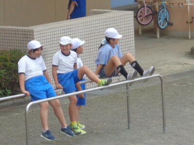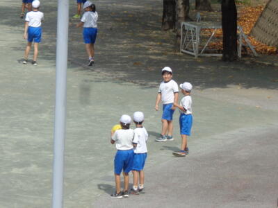 ★少々曇が多めのせいか、これまでよりは気温が低く過ごしやすい「業間休みの時間」です。子供たちは、友だちと大きな声を出し合いながら、とても楽しそうに遊びまわっていました(#^.^#)。