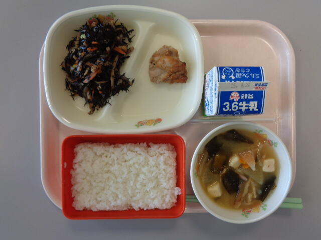ごはん 牛乳 鶏肉の香味焼き ひじきの五目炒り煮 満点みそ汁