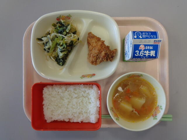 ごはん 牛乳 鶏肉のごま揚げ 小松菜のさっぱり和え どさんこ汁