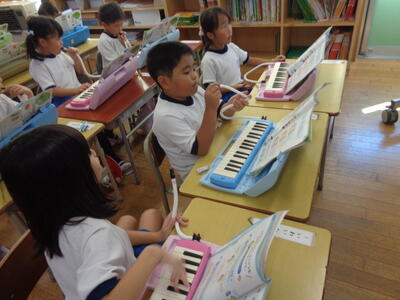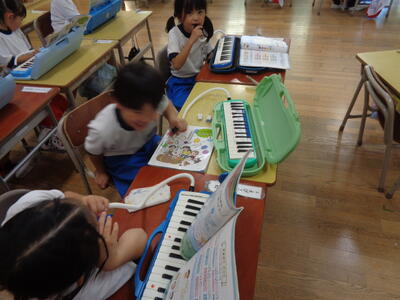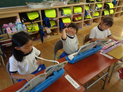 ★子供たちは、とても楽しそうに「鍵盤ハーモニカ」の練習に取り組んでいました(#^.^#)。