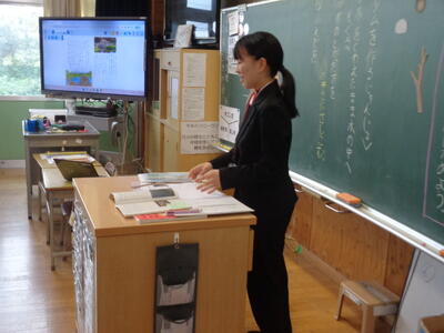 本日の2校時、2年1組の教室に於いて、教育実習生による授業(国語)を行いました。