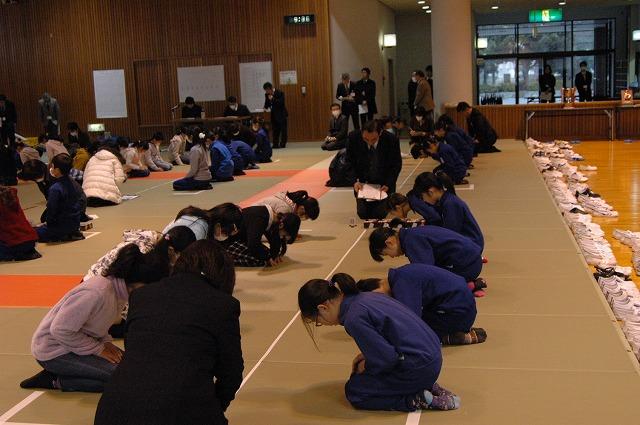 武道体育館一階の剣道場で行われた開会式では、第4回大会優勝の真岡小学校からの優勝杯返還、続いて、大島政春大会会長(東沼小学校長)、酒井勲教育長よりあいさつがあり、最後に大会事務局より競技上の説明がありました。