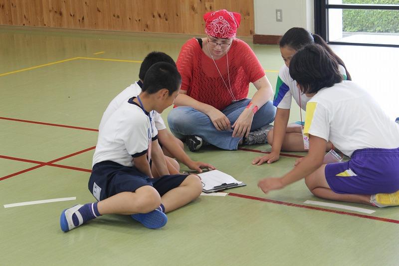一日目の午前中は、この2日間行動を共にするチームを決め、1チーム3~4名に分かれました。その中で自己紹介を英語で行った後、さらにグループを越えて自己紹介を行いました。昼食後は館内でレジャーハンティングを実施し、各チェックポイントでは英語のクイズに挑戦しました。最初はお互いに初対面ということもあり、ぎこちなかったチーム内の雰囲気もだんだん打ち解け合う様子が見られました。
