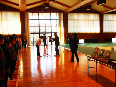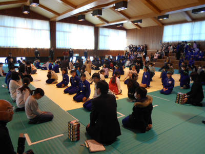 武道体育館一階の剣道場で行われた開会式では、第8回大会優勝の久下田小学校からの優勝杯返還、続いて、鈴木伸治大会会長(大内中央小学校長)、田上富男教育長よりあいさつがあり、最後に大会事務局より競技上の説明がありました。