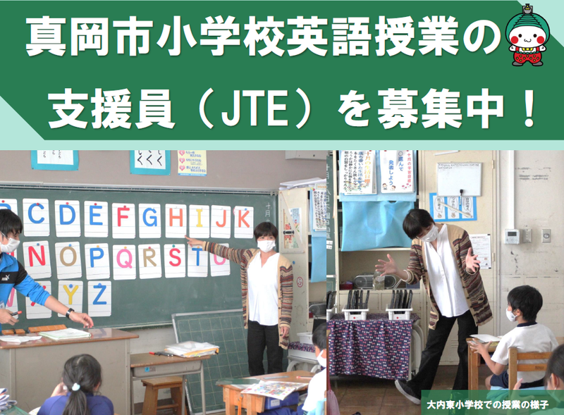 一覧へ 令和4年度小学校外国語活動支援員(JTE)を募集します 投稿日時: 2021/11/04 教育政策係 真岡市では小学校での英語授業の支援員(JTE)を募集しています 【業務内容】担任の先生と一緒に小学校1~3年生の英語の授業や、授業のカリキュラム・教材の作成支援などをしていただきます。 【任用期間】令和4 年4 月1 日~令和5 年3 月31日(再任用あり)【賃金】時給2,000円(源泉徴収あり) 応募条件や応募方法など詳しくは真岡市ホームページをご覧ください。 真岡市ホームページ(令和4年度JTE募集)