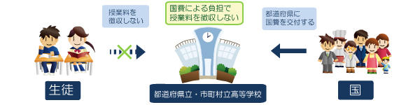 国の費用により、公立高等学校の授業料を無償化するとともに、国立・私立高校等の生徒の授業料に充て