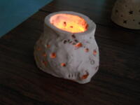 今回作るのは「ランプシェード」です。ほのかな明かりが出るように、形や大きさ、穴の位置など工夫して作成していきます。ひも状に伸ばした粘土を重ね、つなぎ目を指でのばしていき形にしていきました。そこから、ストローや型抜きで穴をあけたり、模様をつけて、オリジナルのランプシェードができました。焼き上がりが楽しみです。