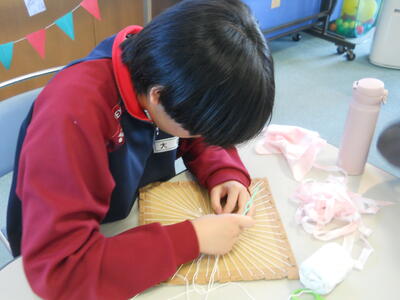 まずは生地を裂くところからスタートしました。そこから編んでいき、ひとつひとつ丁寧に編んでいきました。