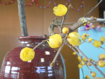 また今日は「ろうばい」のお花をいただきました。早速活けると香りも良く、教室内に一足先に春がきました。