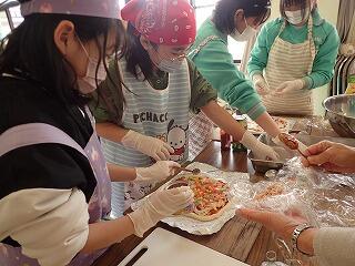 自然教育センター体験教室に参加してきました。真岡教室から9名、二宮教室から5名、学校からの申し込みも合わせて19名の参加があり、初めて会う人もいる中で協力しながら楽しく活動することができました。活動内容はピザづくりです。ピザの生地を作るところから体験しました。作業しやすいように手伝ったりやり方を教え合ったりしながら作業を進め、協力することのよさを感じ取ることができたようです。できたてのピザをみんなでおいしくいただきました。センターの先生が焼いてくださったあんこピザやチョコレートスコーンも絶品でした。