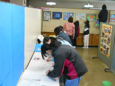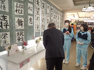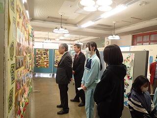 今日は、真岡市長様、真岡市教育委員会教育長様が視察に来てくださいました。通室生は、昨日の経験を生かして来場された皆様のご案内をしています。作品展は明日(20日)までです。