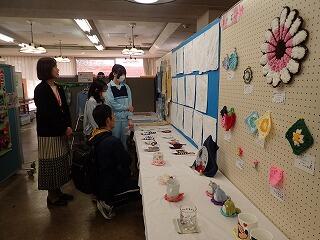 3日間の作品展が終了しました。来場者数は延べ200人を超えました。来られた皆様をご案内したり、作品の紹介をしたり、商品販売の対応をしたりする中で、一回り成長した姿・態度が見られるようになりました。また、作品や案内する態度について賞賛のお声かけをいただいたことで達成感や充実感を味わい、自信になったようです。ありがとうございました。