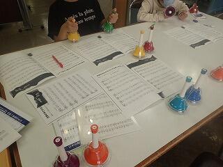 午後、ハンドベルを使って演奏を楽しみました。今回が2回目でしたが、前回実施したときよりもリズムよく演奏をすることができました。