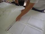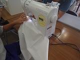 今日が初めての生徒もおり、先生のお話を良く聞いて寸法どり(左写真)から、真剣に取り組みました。今日が3回目の子どもたちは、ミシンの扱い方(右写真)もどうにいったものです。