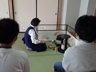 先週の水曜日(10/26)の活動です。毎年お世話になっているボランティアの先生に教えていただく茶道教室でした。茶道の歴史や茶道具のこと、作法のことなどを教えていただきながら、最初は緊張しながらの体験でしたが、お茶がおいしくて、子どもたちは2回もおかわりをしてしまいました。(和菓子もでした。)