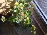 多肉植物カランコエも小さく、赤と黄色のきれいな花を咲かせています。