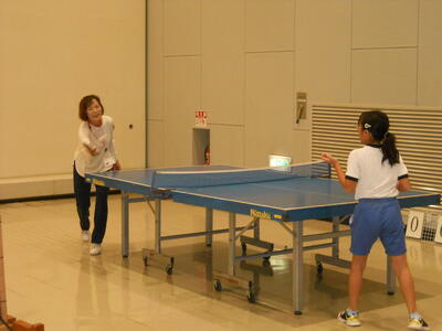 市総合体育館でスポーツレクリエーションをしてきました。みんなで卓球とバドミントンをして汗を流しました。また、インディアカの羽を持って行き、円陣を組んで羽を手で打ち合いました。手で打つのが思ったよりもも難しく、ネットをはさんでゲームをすることはできませんでしたが、手で打ってどこまで飛ばせるか競争して盛り上がりました。