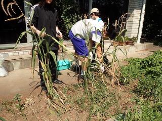 長い夏休みが終わり、2学期がスタートしました。今日は7名の生徒が通室し、夏休みの思い出話に花を咲かせていました。それぞれ充実した夏休みを送れたようです。午後は、畑に植えてあったポップコーンの収穫や畑の整備、教室内の清掃を行いました。
