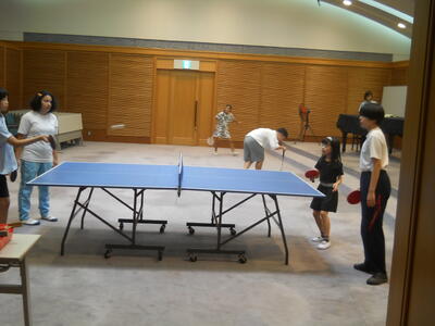 教室の隣の多目的室をお借りして、卓球やバドミントン、縄跳びなどを時間いっぱい楽しみました。外は暑すぎて活動できないので、多目的室のような広い場所が近くにあるのは嬉しいです。また楽しく活動したいと思います。