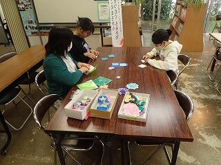 笠原先生と石田先生をお迎えして手芸教室を行いました。作品展に向けて展示するものを選んだり、作品の仕上げを行ったりしました。