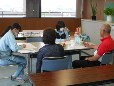 針と糸を久しぶりに持つ通室生たちに、笠原先生がやさしく言葉をかけていただきながら、ゆっくりとふきんを縫うことができました。これからも完成をめざして、楽しく取り組んでいきたいです。