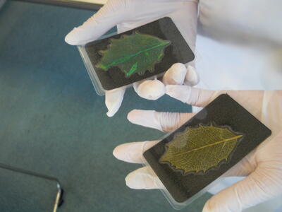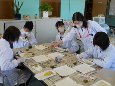 今日は科学教育センターから大山聡子先生を講師で招いて、葉脈のしおり作りを教えていただきました。