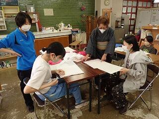 それぞれが時間いっぱい集中して取り組み、最後まで半紙に書ききっていたことを石田先生から褒めていただきました。最後は作品を2枚仕上げて、提出しました。次回も楽しく取り組んでいきたいと思います。