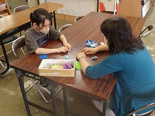 花壇に植えてあったチューリップの球根とパンジーを取り、そこに野菜の苗を植えたり種をまいたりしました。キュウリ、ミニトマト、オクラの苗を植え、カラフルなラディッシュの種をまきました。暑い中でしたが、協力して短時間で作業を進めました。残った時間で折り紙を折りました。アサガオや手裏剣を作りました。