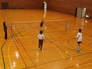 卓球はダブルスになり、真岡教室同様にラリーが続くようになりました。天井も高いのでバドミントンもできました。