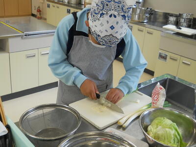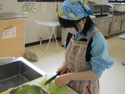 調理教室を行いました。メニューはチャーハンとコンソメスープで、仕事を分担しながら調理を進めました。チャーハンもコンソメスープもとてもおいしく仕上がりました。