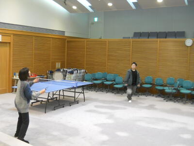 コミセン内の多目的室をお借りして、卓球やバドミントン、かくれんぼ、バレーボール、大縄跳びなどをして楽しみました。少し動くと、体はぽかぽかして暑いくらいです。また楽しく活動していきたいと思います。