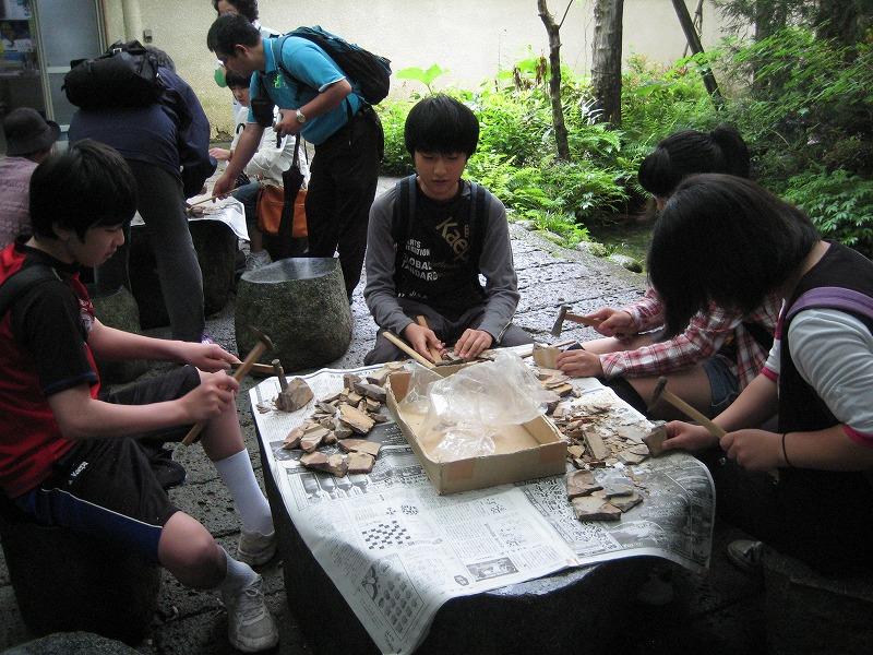 木の葉化石園では、展示されている化石に目を見張り、原石から化石を割り出す活動に夢中になって取り組みました。
