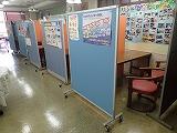 真ん中の写真は、学習室の様子です。つい立で区切られた個別の学習机があります。