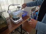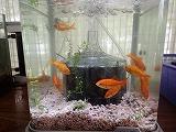 ライブリー教室の活動室には、3つの水槽があり、金魚(大と小)、どじょう、川エビがいます。