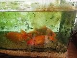 左と真ん中の写真は、掃除が終わり見違えるほどきれいにった小さな金魚の水槽です。時間がなく大きな金魚がいる水槽(右の水槽)まではできませんでしたので、後日です。ドジョウと川エビの水槽は、ガラスがきれいにならないので、少々緑色のままです。