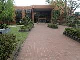 左の写真は、正面玄関です。木々や野外彫刻に囲まれたアプローチがなかなか素敵です。