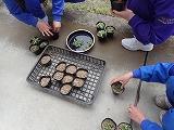 今日は曇り空、夜には雨が降る天気予報、絶好の農作業日和。ということで、教室の南側にある小さな農園兼花壇で、農園活動をしました。